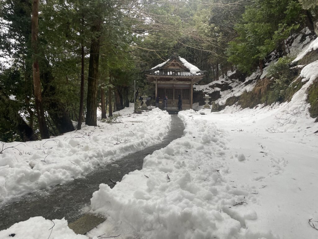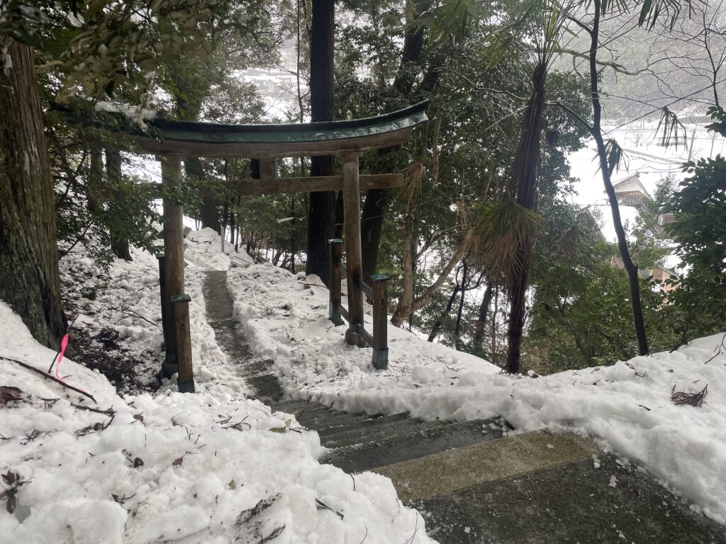 節分の前に神社までの参道を除雪し、松やお酒やお灯明の準備をしました。