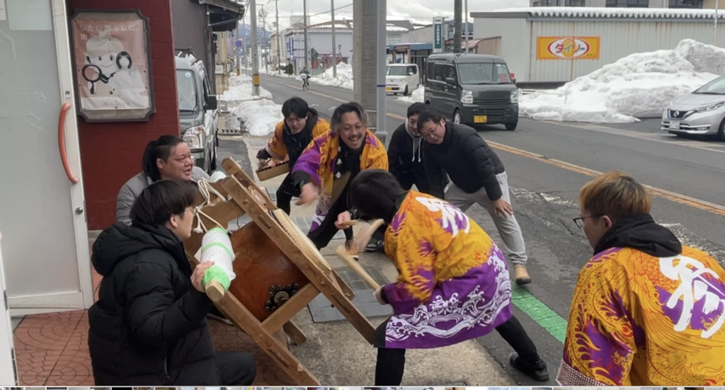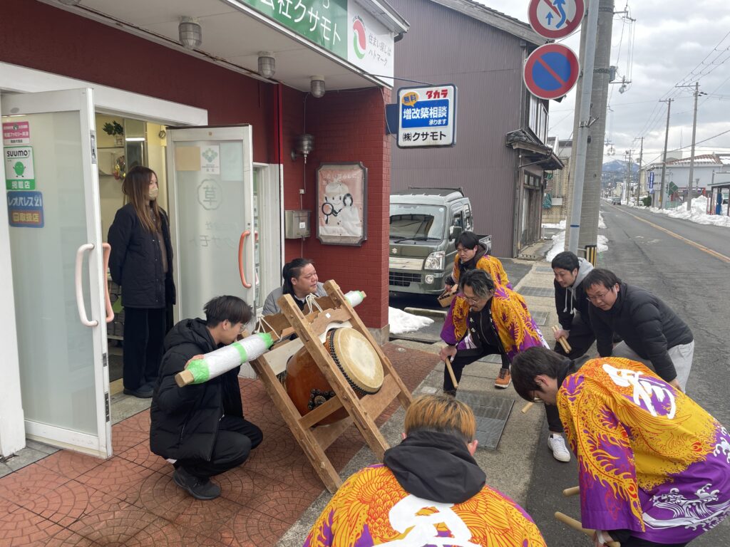京丹後市網野町・浅茂川に伝わる「節分太鼓」は、古くから続く厄払いの行事です。 節分の日、太鼓の音には鬼を追い払う力があるとされ、地区の家々を巡って無病息災と家内安全を祈ります。 太鼓を叩けるのは、昔から数え36歳の男性だけと決まっており、 「ドッコイドッコイ! よー打つよー打つ! そこらじゃそこらじゃ!」