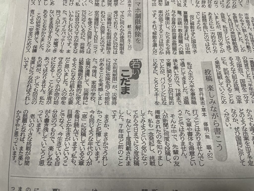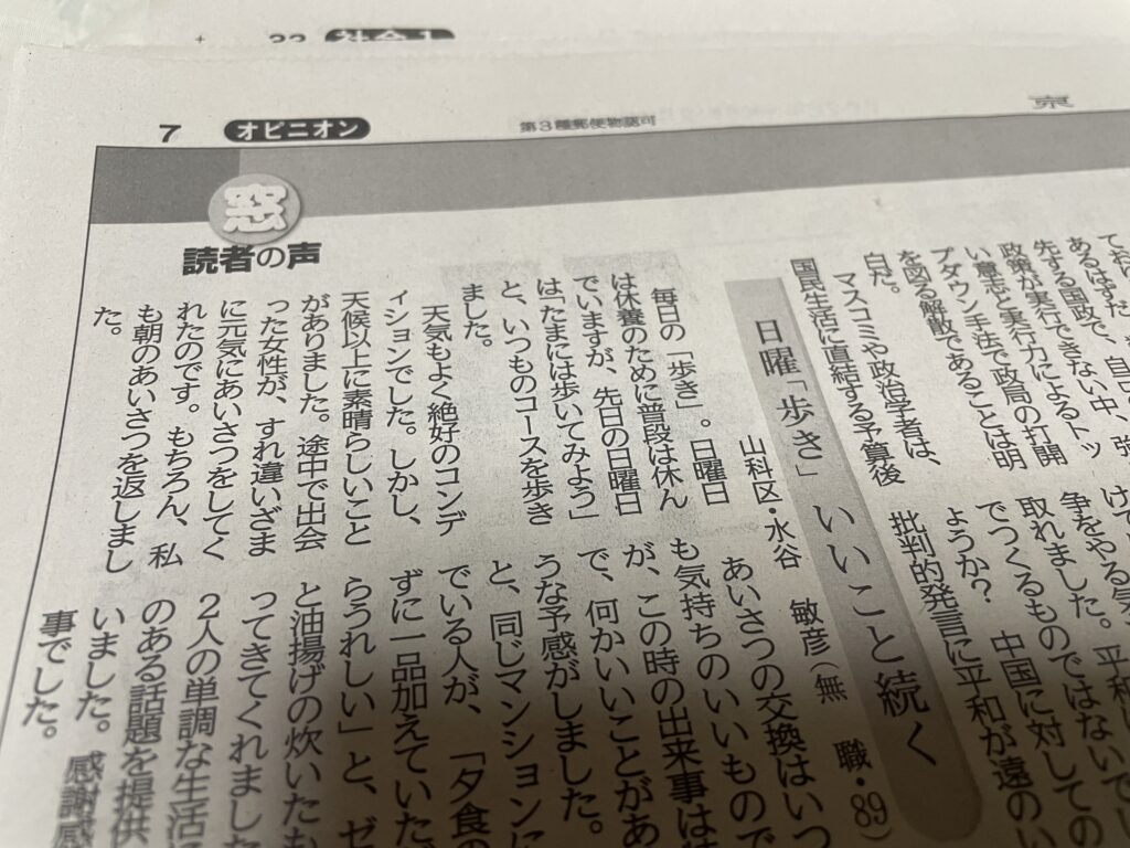 京都新聞 窓 読者の声