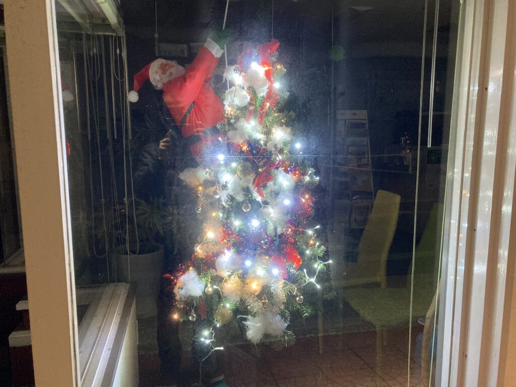 店頭にクリスマスツリーを飾ってみました!