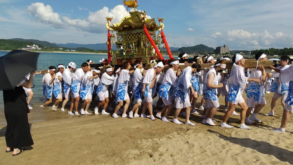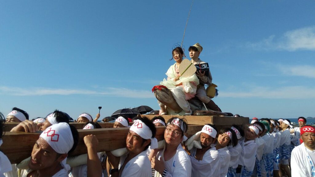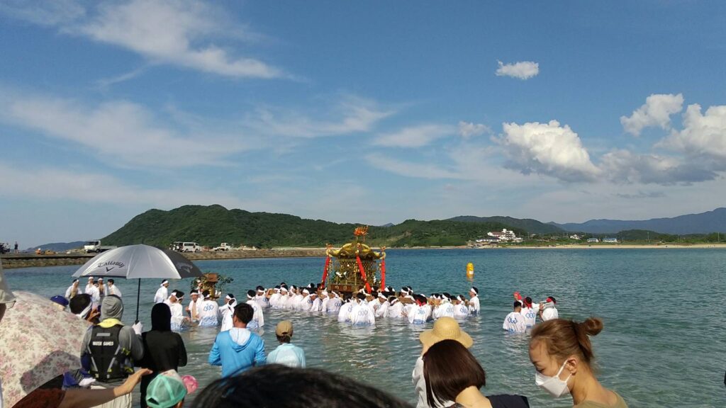 海上渡御(かいじょうとぎょ)と呼ばれる神輿巡業です。