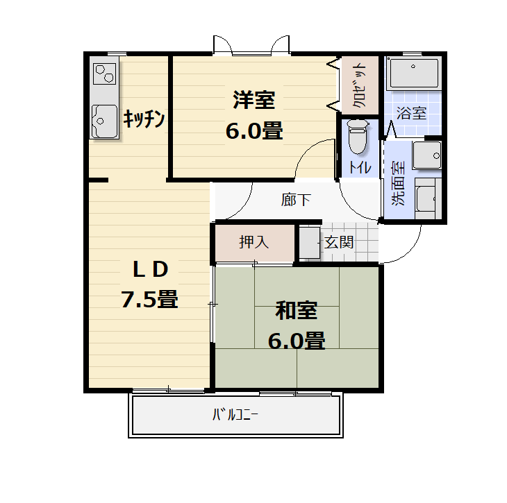 | 設備 | エアコン1台、2ヶ所給湯、プロパンガス(会社指定有り)、洋式トイレ(浄化槽)、ベランダ |