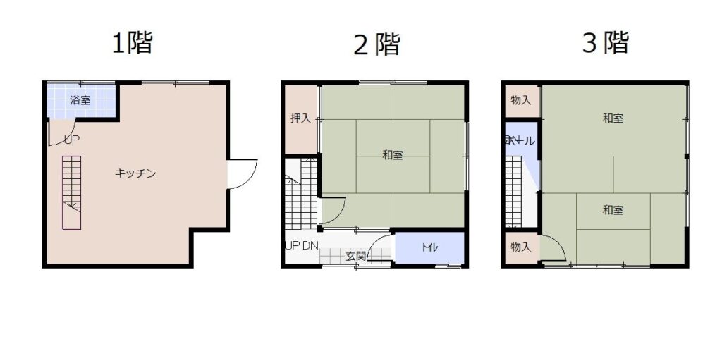 | 建物面積 | 1階:24.40㎡ 2階:24.94㎡ 3階:24.40㎡ |